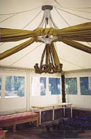 Charpente tubulaire acier thermolaqué, toile polyester enduite PVC, revêtement anti-salissure.